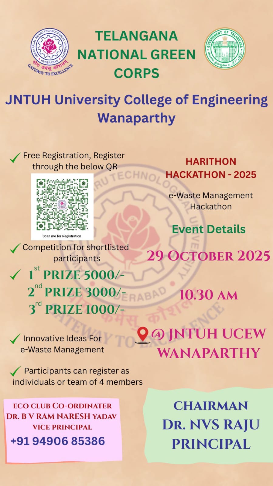 JNTUH Vice-Chancellor Prof. T. Kishen Kumar Reddy, visited UCEW on 09-Apr-2025.