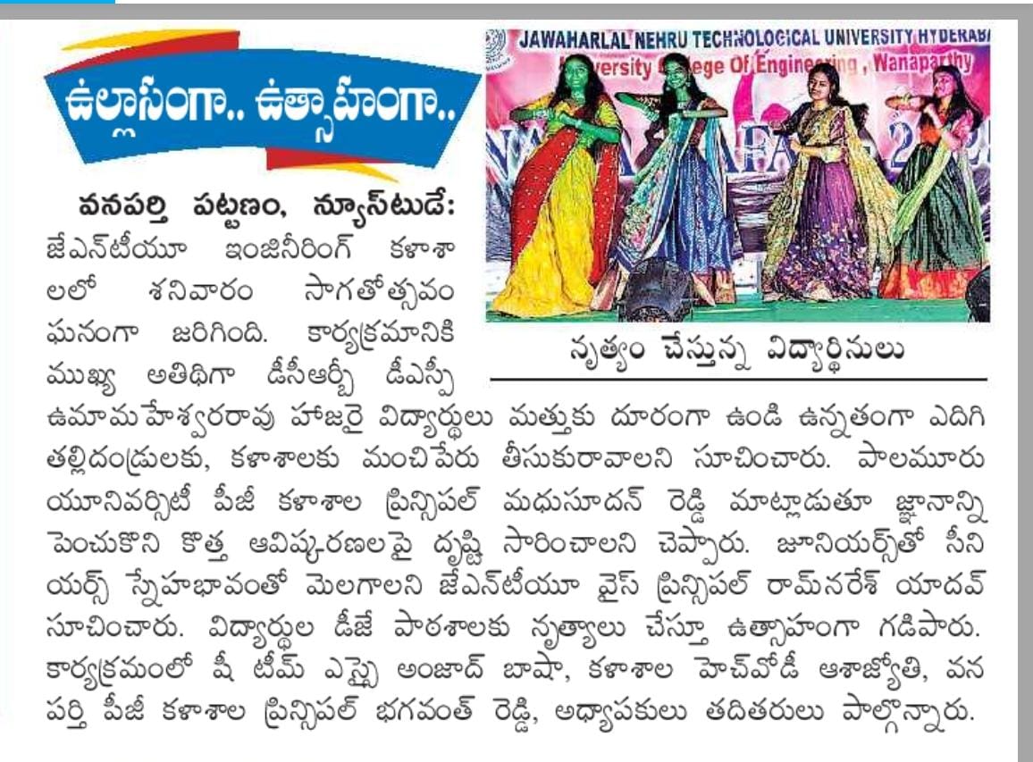 Dr. Madhu Sudhan Reddy, Registrar of Palamuru University visited University College of Engineering Wanaparthy