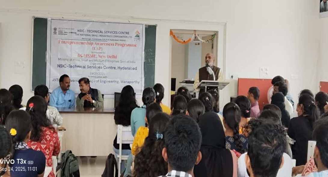 DCMSME, Mew Delhi, Ministry of Micro Small and Medium Enterprises , Govt. Of India, organised by NSIS-Technical Services Centre, Hyderabad in association with University College of Engineering Wanaparthy.